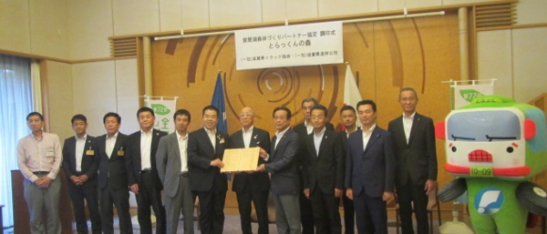 今回の協定は、一般社団法人滋賀県トラック協会が運送業として二酸化炭素を排出していることから、社会貢献活動として森林整備に取り組みたいとの意向から締結に至ったものです。