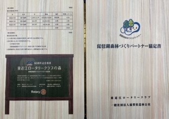 この協定に基づき、東近江ロータリークラブから森林づくりにかかる費用や労働力の提供により、協定対象森林の森林整備が推進されることが期待されます。